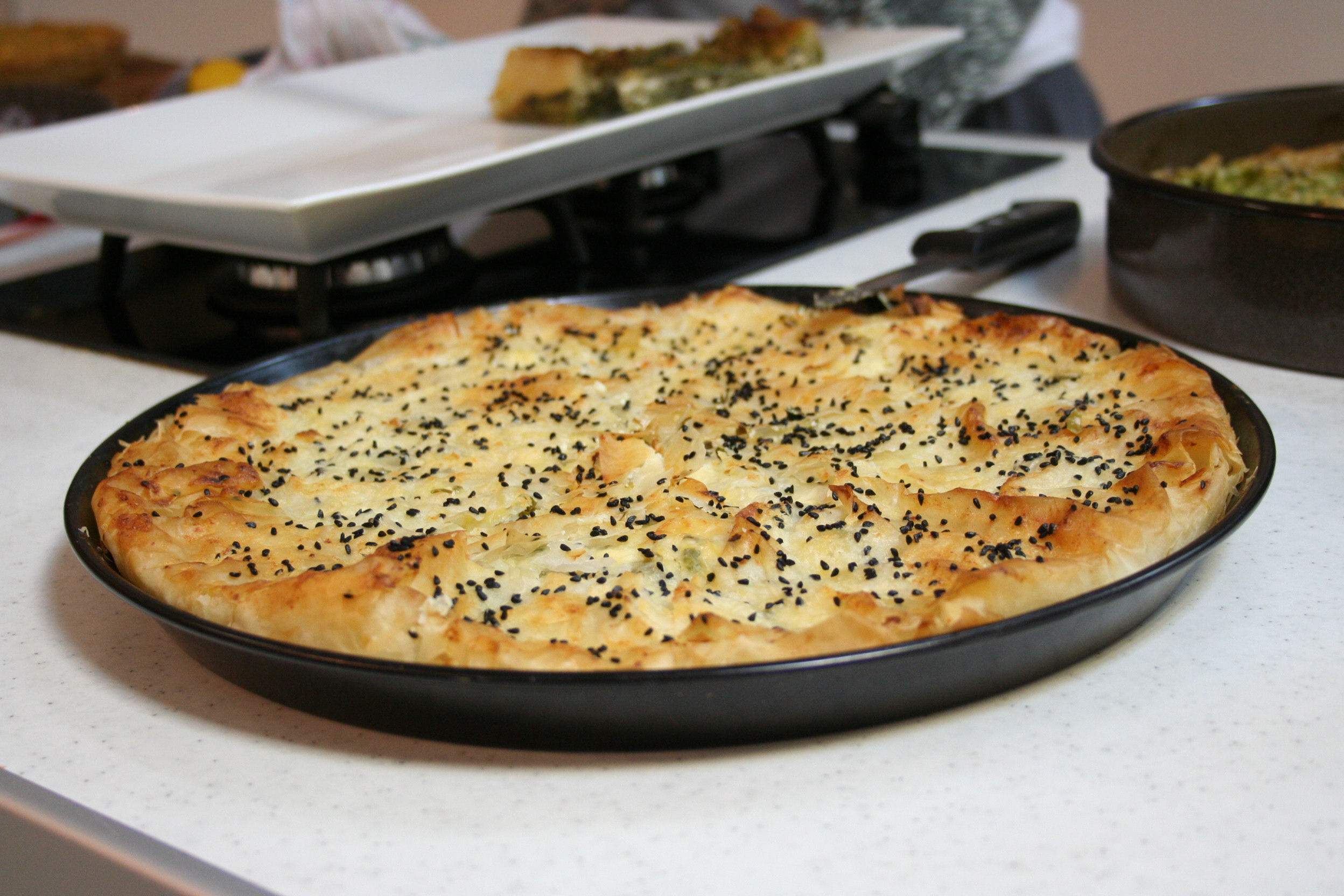Međutim, tu subotu navečer pamtit ću sigurno i po iznanađenjima iz Fletne kuhinje; quiche od mahuna boba, pancete i mladog luka, zatim quiche sa šparogama i gorgonzolom. Slijedi savijača sa začinskim travama (vlasac, svježi estragon, limunska trava, skuta, sezam) i moj osobni favorit – savijača sa špinatom, mladim češnjakom, mladim kravljim sirom, sjemenkama lana.