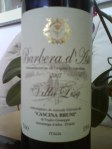 Pored Barbere Villa Lisa, probao sam jos dve barbere,Il pozzo Barberu i Caldirola Barberu IGT. Poslednja od navedenih je bila naj losija, dok sto se tice prve dve rezultat je neresen. To su laganija crna vina, naglasene kiseline koja podseca na visnju. Buke im je prijatan ali uzdrzan, nekako nenametljiv. Licno ovo vino mi je bilo prijatno nekako osvezavajuce i nesvakidasnje, tako da nemam nista protiv da ga probam ponovo. Sve u svemu dojem mu prelaznu ocenu.