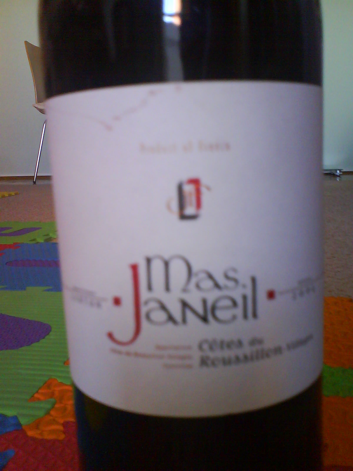 Sad mu se vraćam nakon nekih dvije godine premda sam u međuvremenu zabilježio dojam njegova srodnika Cuvee des Ardoises des Erles (vinopija.wordpress.com/2009/06/10/jf-lurton-–-cuvee-des-ardoises-des-erles-fitou-2004) Mas Janeil je također cuvee sorti Grenache, Syrah i Carignan u sebi specifičnom omjeru, ali je puno važnje da je to A.O.C. vino regije Languedoc-Roussillon.
