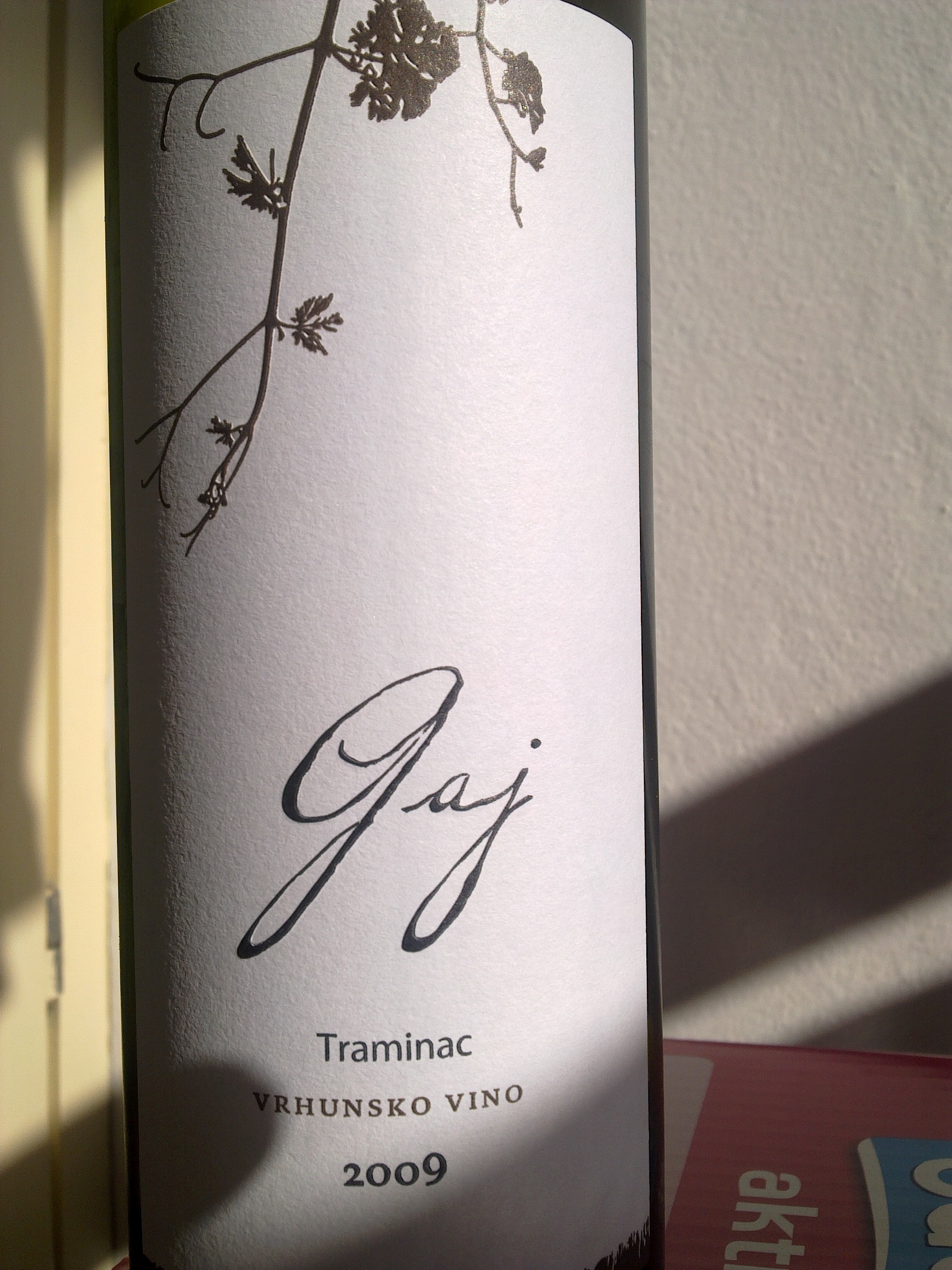 Traminac s položaja Gaj sada kušam prvi put i volio bi da opravda očekivanja, posebno obzirom na interesantnu berbu 2009. Dakle, vino je poluslatko s 16% alkohola !