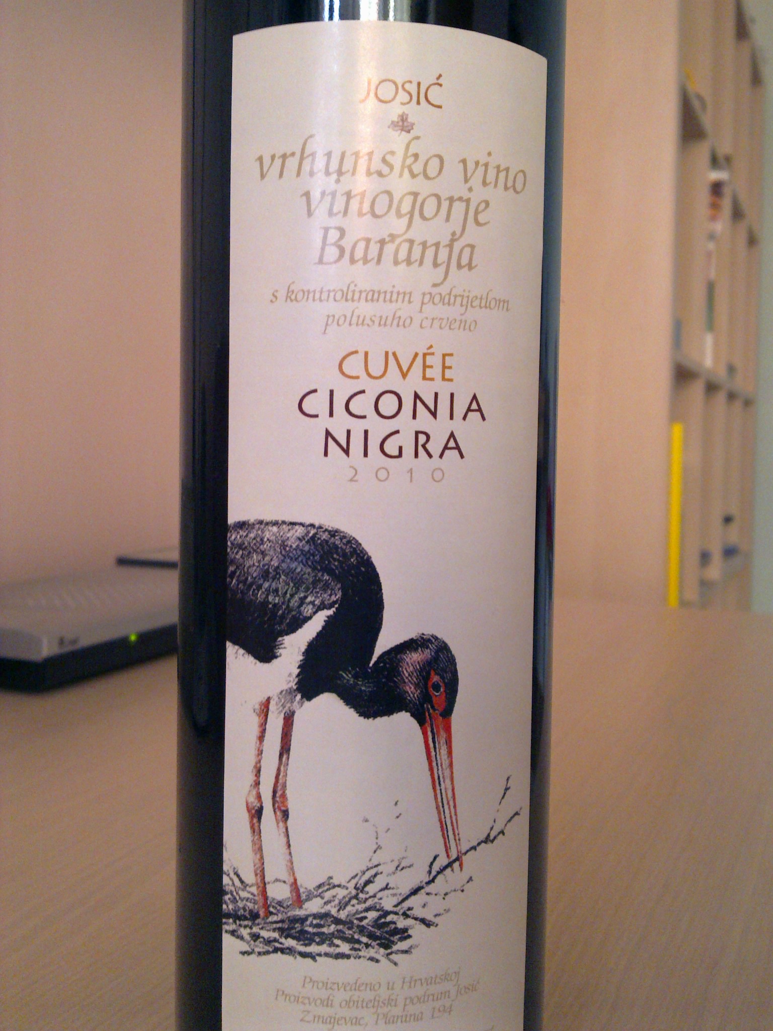 Josićeva Ciconia Nigra moguće je najpoznatija kupaža iz Baranje. Pinot Crni, Cabernet Sauvignon i Cabernet Franc u vrlo namjerno polusuhom stilu donose vrlo intenzivno voće na nosu, skoro prejaku aromatičnost slatkog crvenog voća (maline) i cvijeća, skoro do svježine mladog vina… da ne izbija pomalo topline 13,2% alkohola ne bih znao da je vino 🙂