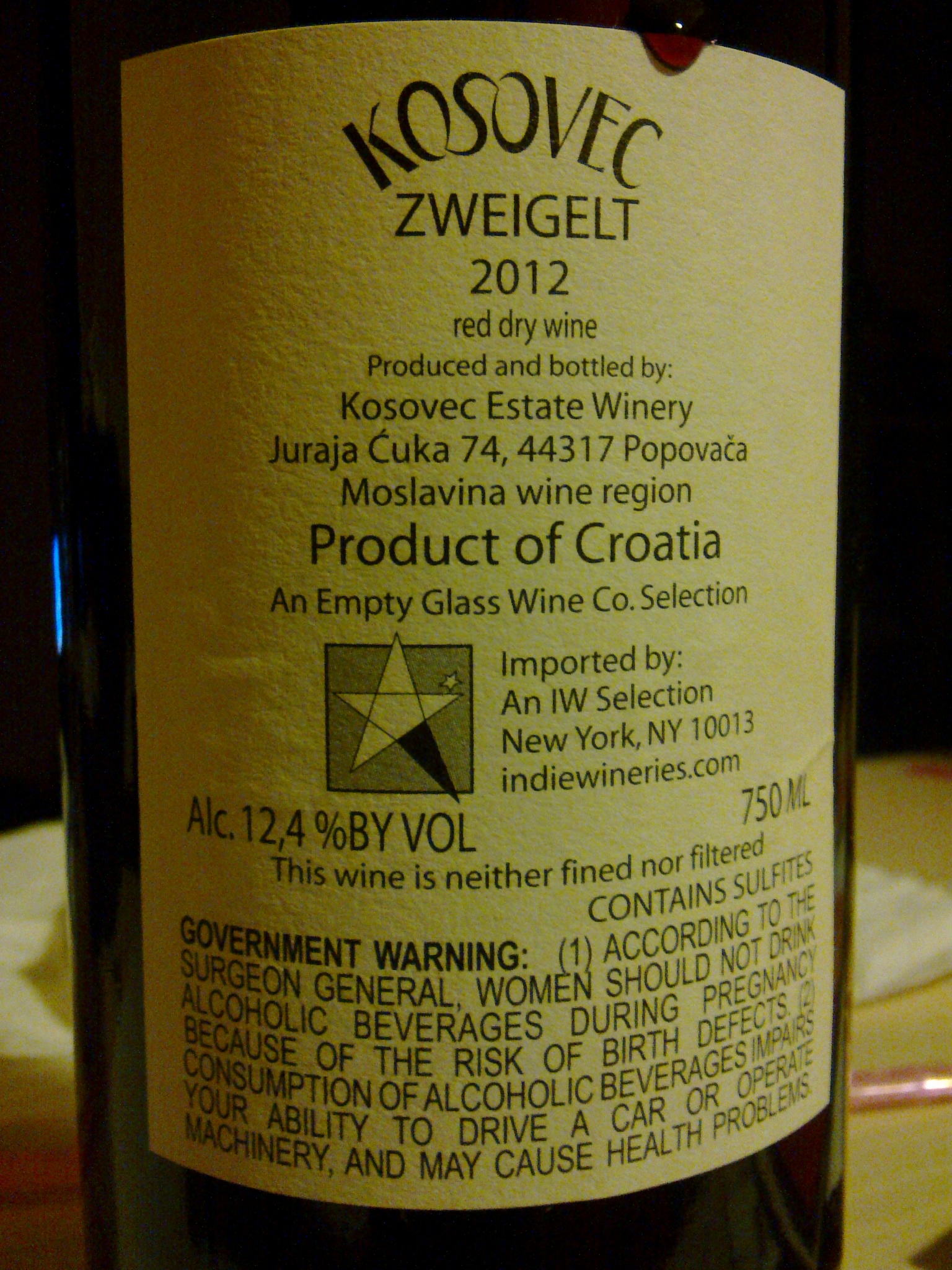 A pro pos, ionako male količine otišle u izvoz. Čisto kao ilustracija ostavio sam foto zapis kako izgleda etiketa domaćeg vina za tržište SAD-a…