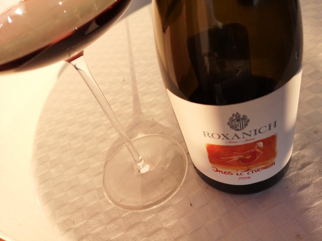 Ova poetska konstrukcija možda zvuči kao plaćeni hvalospjev nekoj kulinarskoj kreaciji, a ne kao opis vina. Izazov je pokušati opisati „Ines u crvenom“. Taninska struktura fascinira kao kod najsuptilnijih Pinota. Jedna nota rustikalne rudimentarnosti koju obožavam, mnoge će smetati. Kao i životni stadij vina i fascinantna evolucija posljednjih 5 godina.